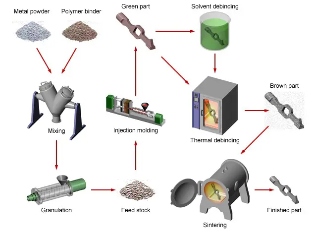 Metal Enjeksiyon Kalıplama (MIM), metal tozları ve polimer bağlayıcıların karıştırılmasıyla oluşturulan bir hamurun enjeksiyon kalıplama yöntemiyle şekillendirilmesi ve ardından sinterlenerek yoğun metal parçalar elde edilmesi sürecidir.